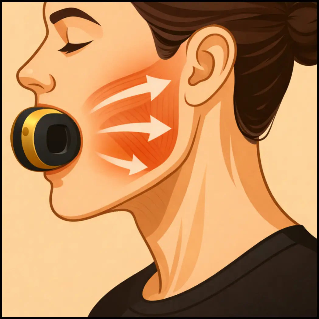 Допълнително, изследвания на University of Tokyo, Department of Orofacial Science доказват, че повишеното съпротивление при захапване активира масетера и подбрадичните мускули, подобрявайки тяхната сила и така се оформят контурите на лицето.
