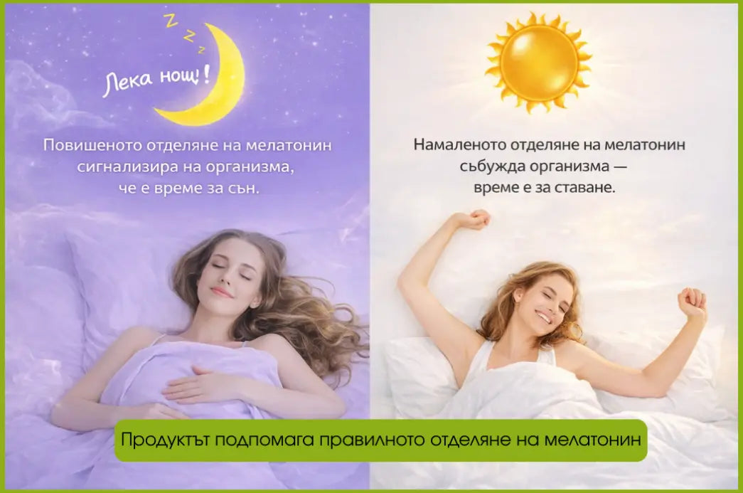 Етеричните масла действат чрез обонятелната система, която е пряко свързана с зоните в мозъка, отговорни за релаксацията и биологичния ритъм. Така тялото по-лесно преминава от активно състояние към покой, което подпомага естественото вечерно отделяне на мелатонин и спокоен сън.